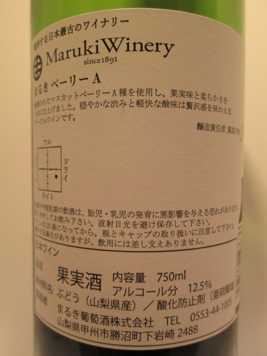 甲州ワイン(赤)「まるきベーリーA」まるき葡萄酒株式会社